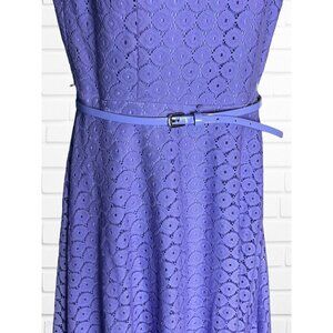 Evan Picone Black Label Women's 4 Dress Short Sleeve Lace Lavender Belt Spring