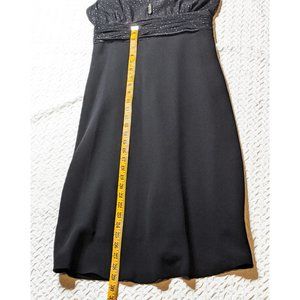 Elegant black sleeveless dress. Features a fitted bodice and flowing skirt. Perfect for formal occasions.