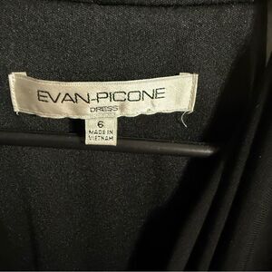 This sophisticated black sheath dress by Evan Picone features a sleeveless design with a striking V-neckline, perfect for a cocktail night out. The dress is crafted in a sleek, fitted silhouette that accentuates the waist, offering a chic and timeless look. Its backless style adds a touch of allure, making it an ideal choice for evening occasions.