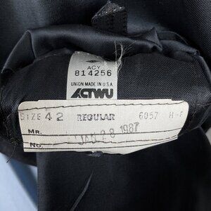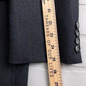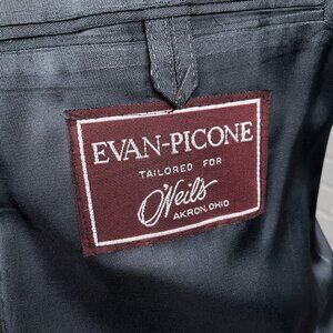 This Evan Picone blazer is a perfect blend of vintage and classic. The 42R size is tailored to fit any man, crafted from acetate in a gray-blue stripe pattern. The perfect piece for a career-minded individual seeking a 80s throwback look.
