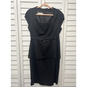 Evan Picone Cap Sleeve Square Neck Peplum Sheath Dress Size 12 Black & Gray