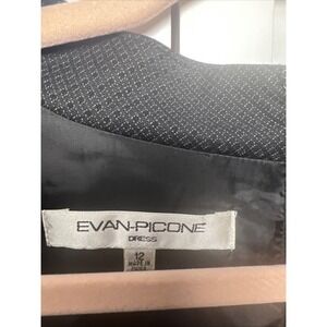 The Evan Picone Cap Sleeve Square Neck Peplum Sheath Dress in size 12 is a versatile and sophisticated option for various occasions. This knee-length dress features a flattering square neckline, short cap sleeves, and a stylish peplum hem, making it suitable for weddings, parties, workwear, and more. Made from a blend of polyester, spandex, and rayon, this dress is lined and belted for a comfortable fit. The black and gray color scheme adds a touch of elegance, perfect for any season.