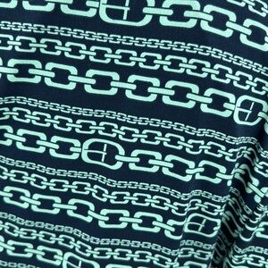 Evan Picone Blue Teal Chain Print 3/4” Sleeves V-Neck Pull Over MIDI Dress have a faux wrap that built in the dress & ruched only on one side of the dress.