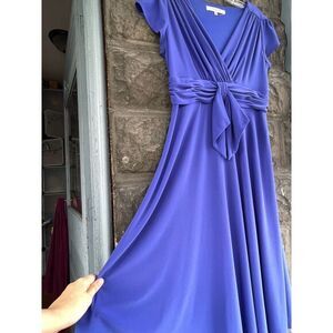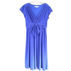 Evan Picone Cobalt Blue V Neck Stretch Midi Dress Size 10