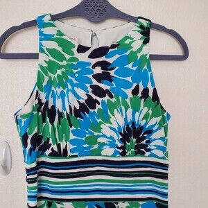 Evan Picone Cocktail Dress Print Green, Blue and White Women's Size 8P