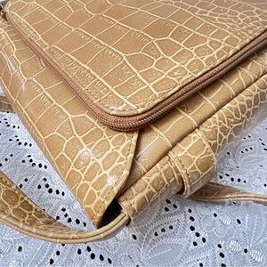 Evan Picone Croc-Embossed Tan Shoulder Bag