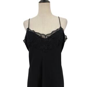 Evan-Picone Black Slip Dress Size 14 Beaded Lace Midi Lingerie Style – Small Flaw