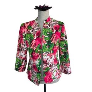 Evan Picone Floral Blazer Jacket Women’s 6P Pink Green Open Front Lined Spring