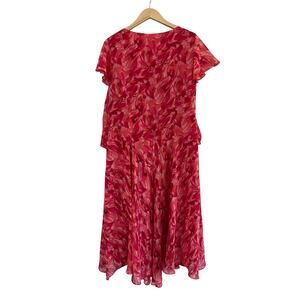Evan Picone Floral Front Tie Midi Dress Womens Size 16 Pink Event Romantic
