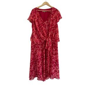 Evan Picone Floral Front Tie Midi Dress Womens Size 16 Pink