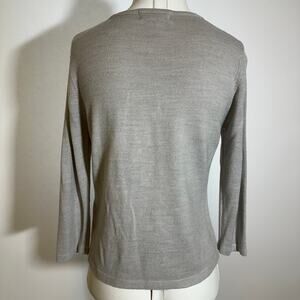 Evan Picone Gray Floral Embroidered 3/4 Sleeve Sweater Womens Size Small Vintage