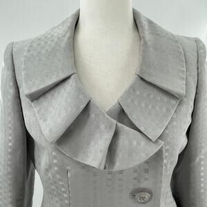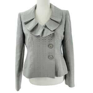 Evan Picone Gray Textured Round Pleated Collar Formal Evening Jacket Blazer 4