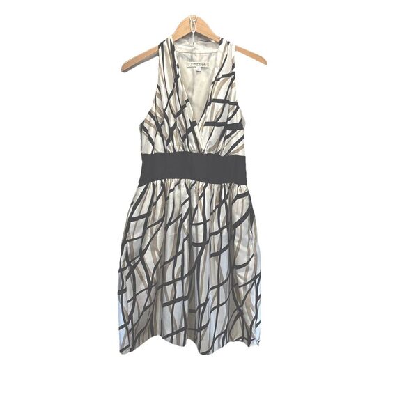 Evan Picone Halter Dress 10 Black White Tan Geometric Pattern Flare Pocket Y2k
