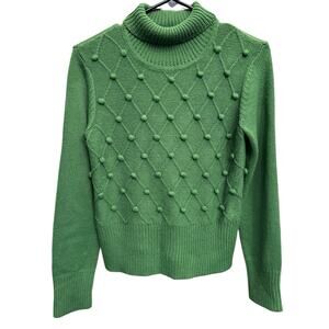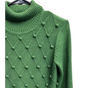 Evan Picone Kelly Green Popcorn Knit Turtleneck Sweater S Classic Preppy Chic