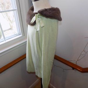 Evan Picone Mint Green Sweater Detachable Brown Faux Fur Collar Size Medium Acrylic