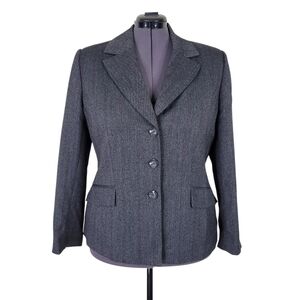 Evan Picone Pant Suit Size 18 Gray Red Striped Flap Pockets Pleated Wide Leg