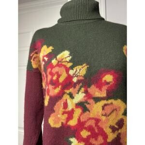 Evan Picone Petites Women’s Floral Wool Angora Knit Turtleneck Sweater Size S