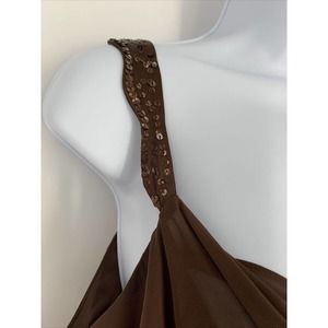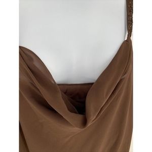 Evan Picone Plus Sz 16 Brown Formal Evening Sheer Sheath Shift Midi Dress Beaded