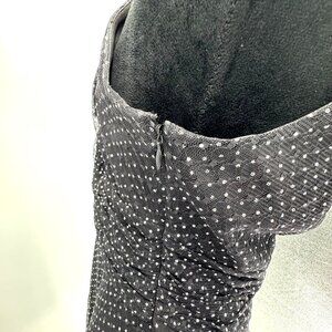 This Evan-Picone dress combines vintage charm and modern sophistication with its polka dot design, breathable mesh fabric, and flattering halter neckline.
