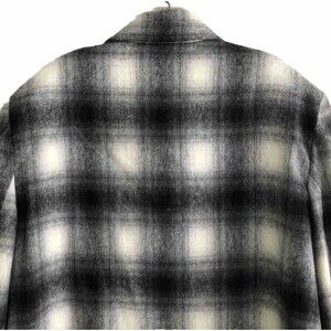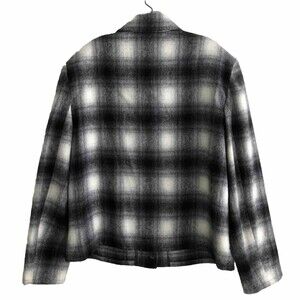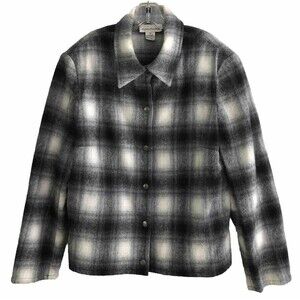 Vintage 90s Evan Picone Wool/Acrylic Blend Shacket in a Gray Black Shadow Plaid. Shirt Jacket is unlined and features shoulder pads and silver-tone Snap buttons