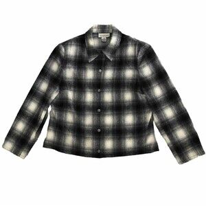 Evan Picone Shadow Plaid Wool Shacket Womens Sz 16 VTG Shirt Jacket Neutral