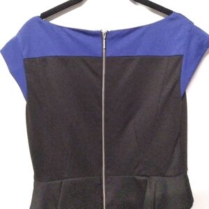 Evan Picone Sheath Suit Dress Black & Blue Peplum Career Chic Colorblock Size 12