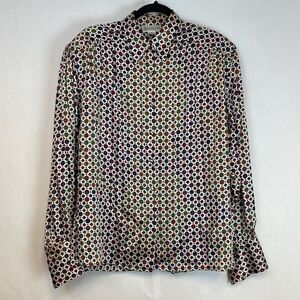 Evan Picone Shirt Women's Sz 14 Multicolor Button-Up Long Sleeve Geometric 100% Silk