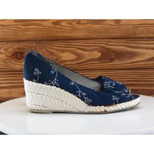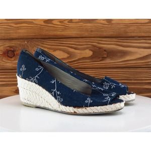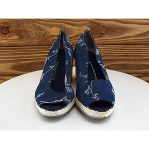Evan Picone Size 6.5 Peep Toe Heel Blue Fabric M Width