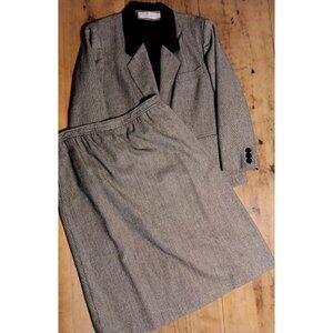 Evan Picone Skirt Suit Womens 16 Wool Blazer Career Classic Velvet Trim Union
