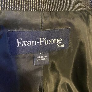 Craft a polished look with this Evan Picone women's blazer, a versatile addition to your wardrobe. The sleek texture in a neutral gray tone is complemented by contrasting black trim, giving it a touch of sophistication that's perfect for workwear or formal events. Tailored to a classic fit, this size 10 suit jacket ensures comfort without sacrificing style.