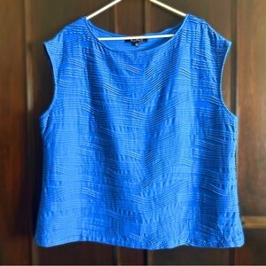 Bright blue sleeveless blouse with textured pattern. Ideal for versatile styling.