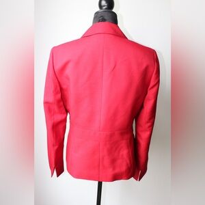 Bold red blazer with a sleek, tailored fit. Features classic lapels and button closure. Ideal for professional or casual settings.