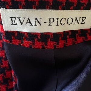 Evan Picone Vintage 1990’s Women’s Red Navy Houndstooth Wool Blazer Size 14