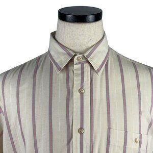 Evan Picone Vintage 80's Short Sleeve Striped Button Down Shirt Mens XL White