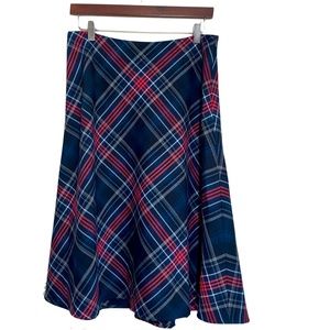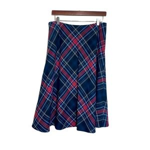 Evan Picone A-Line Tartan Plaid Skirt Navy Blue and Magenta