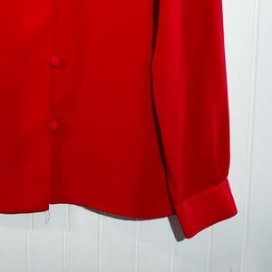 Evan Picone Vintage Dress Blouse Women 14 Red Long Sleeve Button Wrap Turtleneck