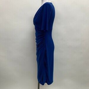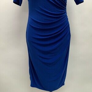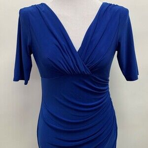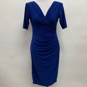 Evan Picone Women's Dress Size 4 Blue Bodycon V-Neck Faux Wrap