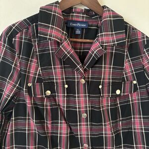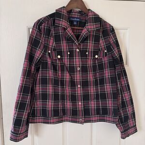 Evan Picone Womens Jacket XL Outdoors Comfy Western Indie Snap Button Plaid Prep