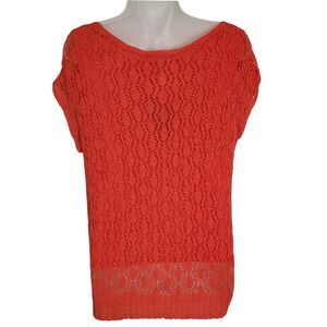 Evan Picone Womens Top Medium Crochet Orange Lined Knit Short Cap Sleeve Sweater