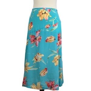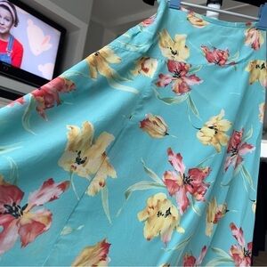 Evan Picone Women’s Vibrant Multicolor Turquoise 100% Silk Floral Midi Skirt 8