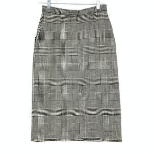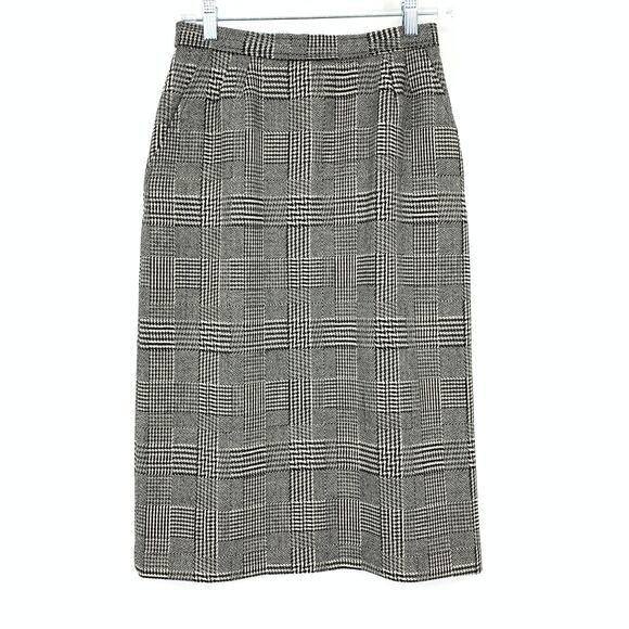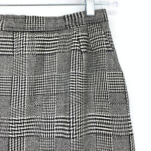 Evan Picone Wool Skirt Womens 2 Glen Plaid High Waist Black White Vintage USA