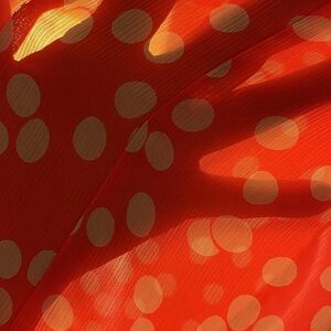 Evan Picone capped sleeved orange sheer blouse with tan polka dots. Size 16W