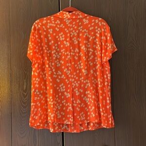 Evan Picone capped sleeved orange sheer blouse with tan dots. Size 16W
