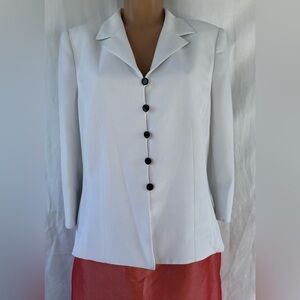 White blazers by Evan Picone: Search for "Black Label by Evan Picone Womens Classic Fit Suit Jacket" at JCPenney, or explore vintage white blazers from Evan Picone on eBay or Poshmark.