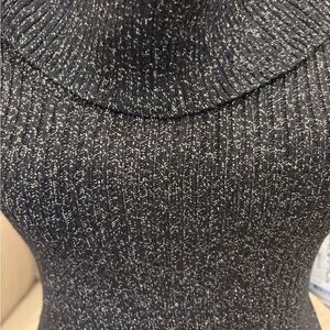 Elegant black dress with a stylish cowl neck. Features a fitted silhouette and half sleeves. Perfect for any occasion.