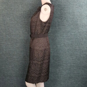 Flattering sleeveless sheath dress with pleats at the neckline.