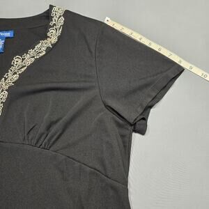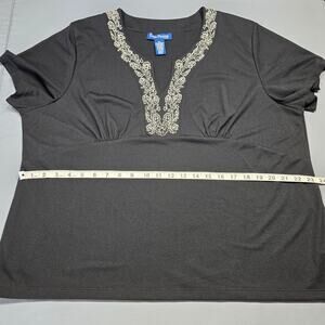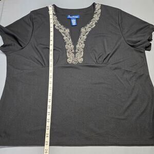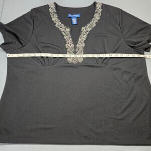 Evan-Picone Black Embroidered Shirt Classic Short Sleeve Top Womens Plus Size 3X