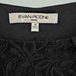 Evan-Picone Black Floral Lace Dress Size 16 Sleeveless Elegant Evening Wear Even