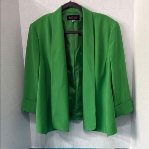 Evan-Picone Black Label Lime Green Open Front 3/4 Sleeve Blazer Workwear Size 18
