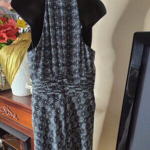 Evan-Picone Black White Patterned Halter Neck Dress Ruched Waist Size 12